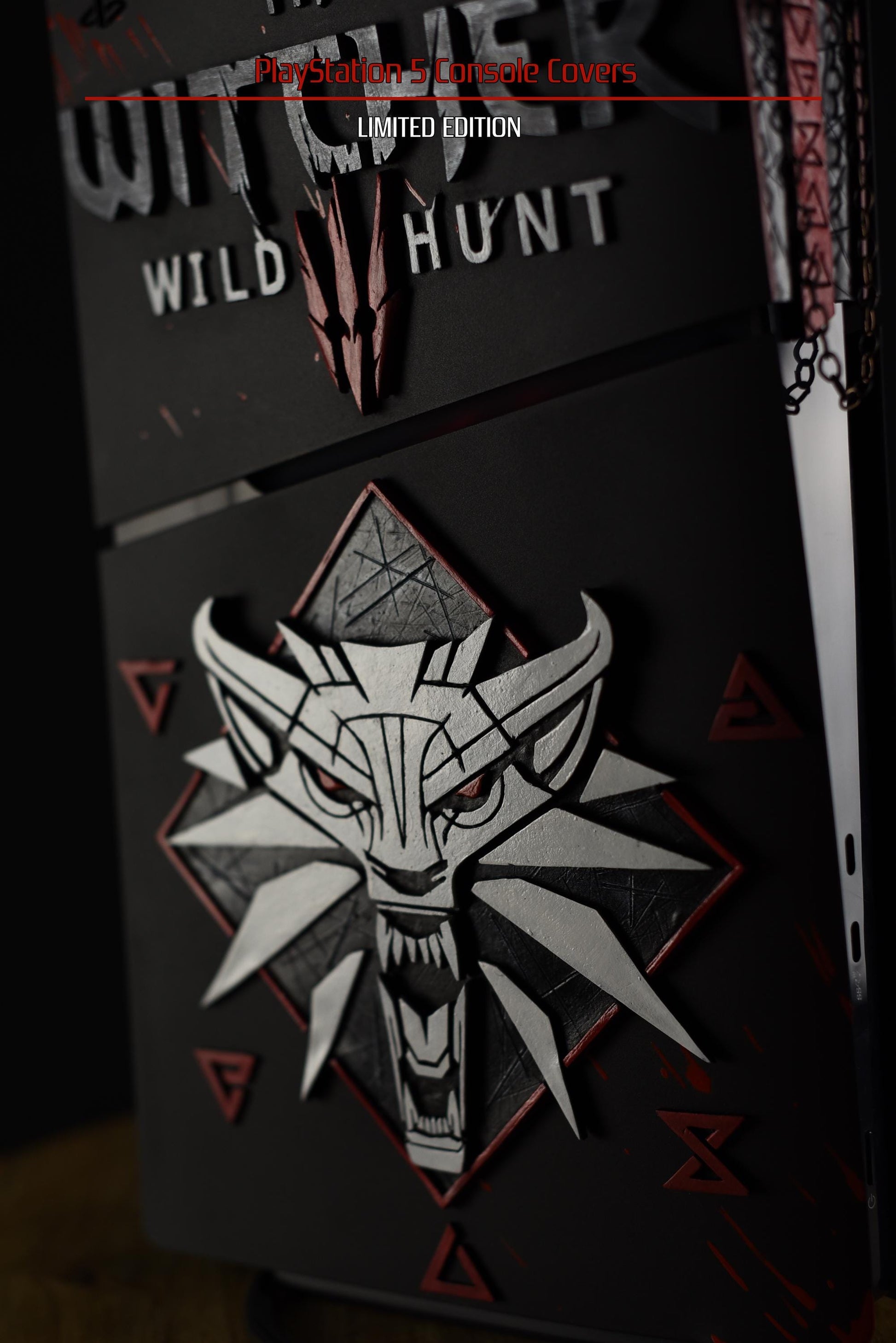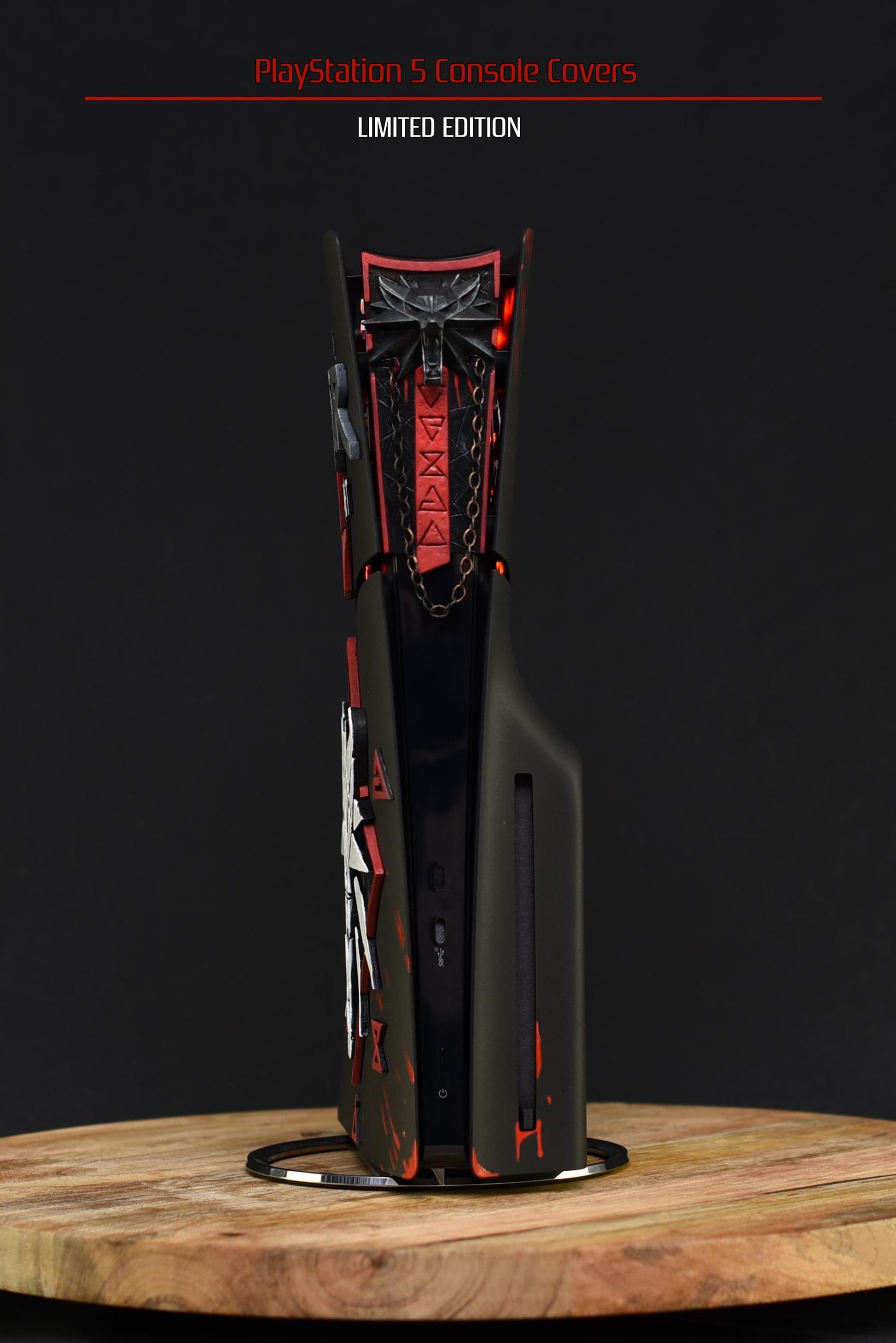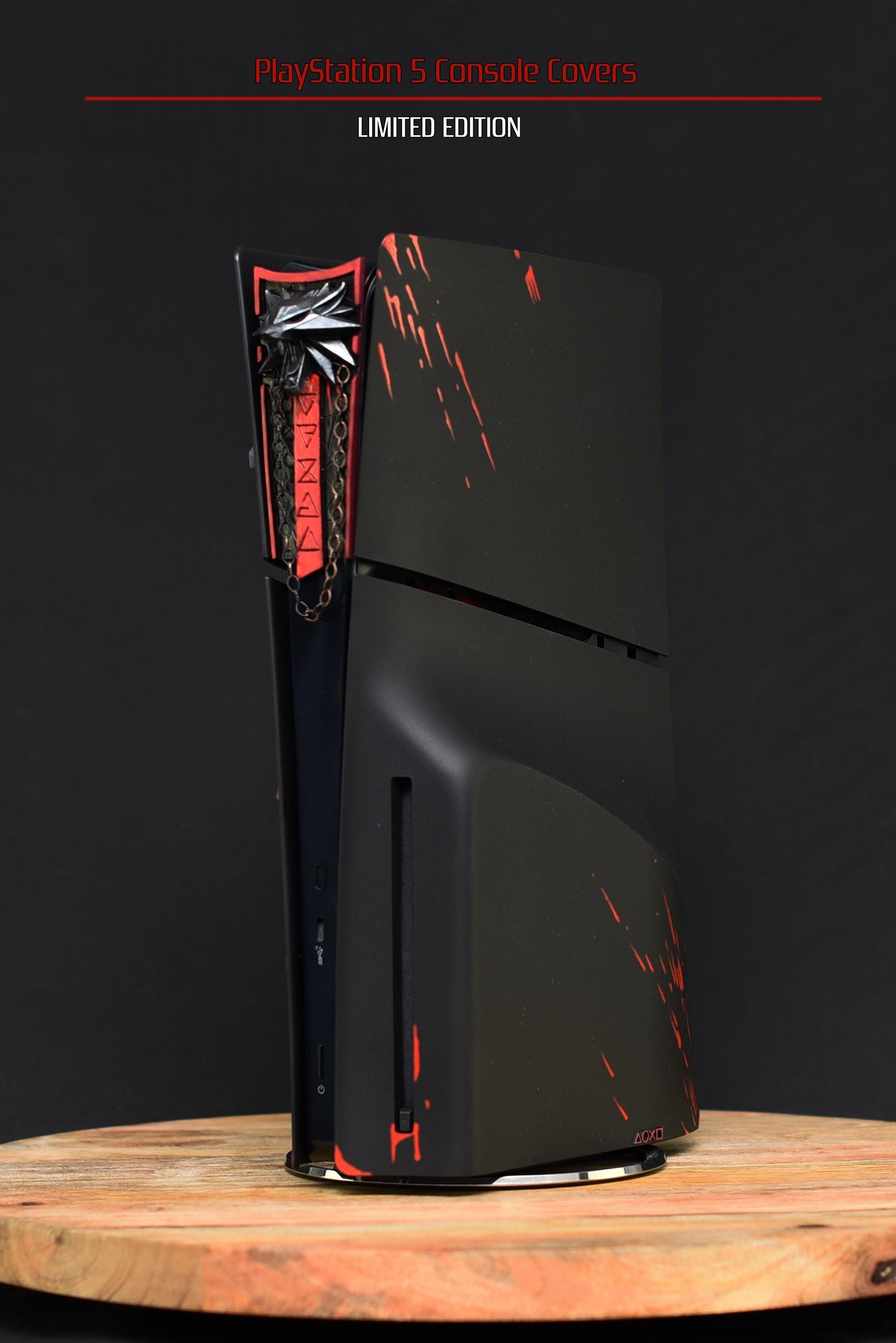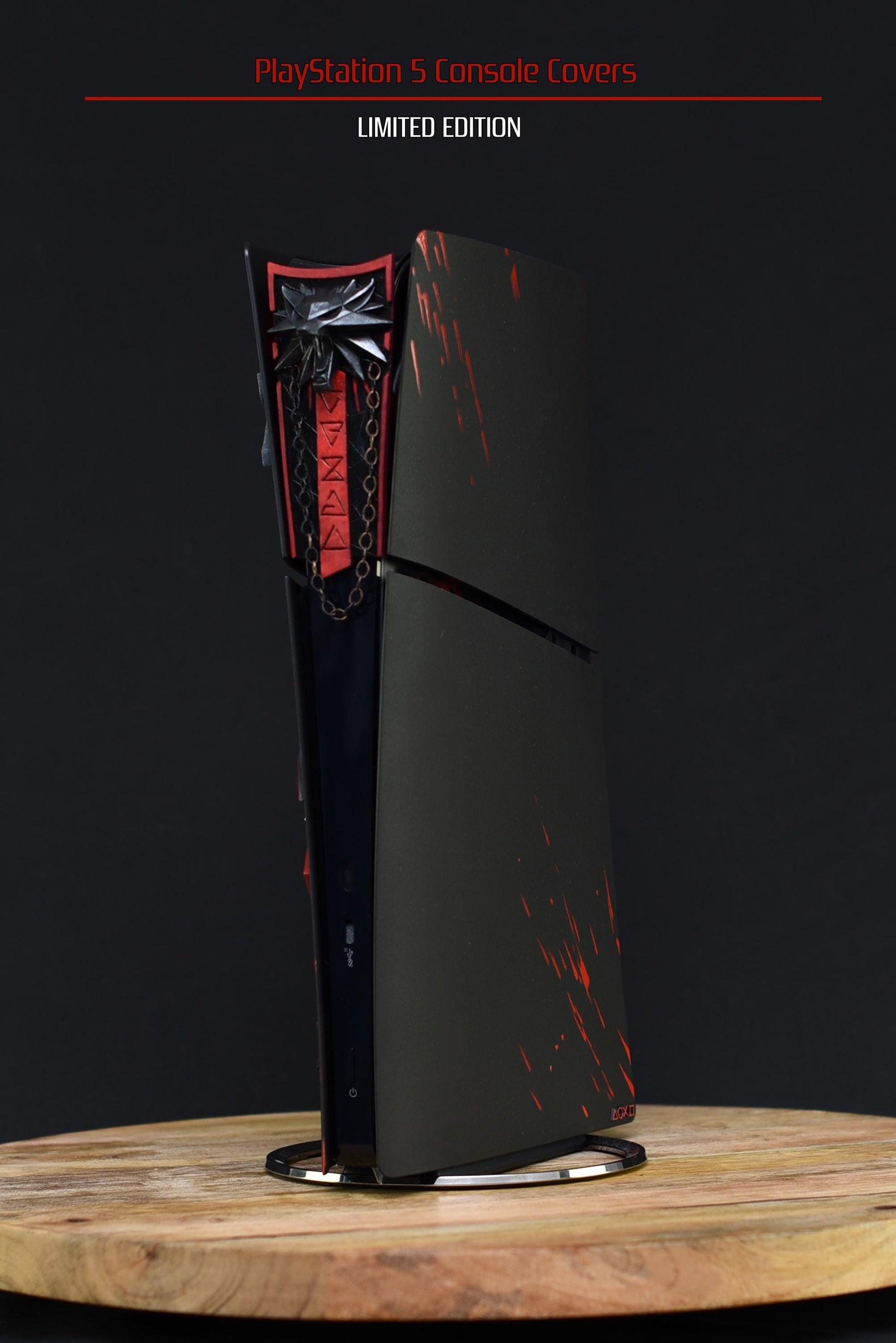 Custom made The Witcher 3 style PlayStation 5 slim console covers.